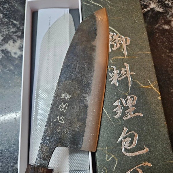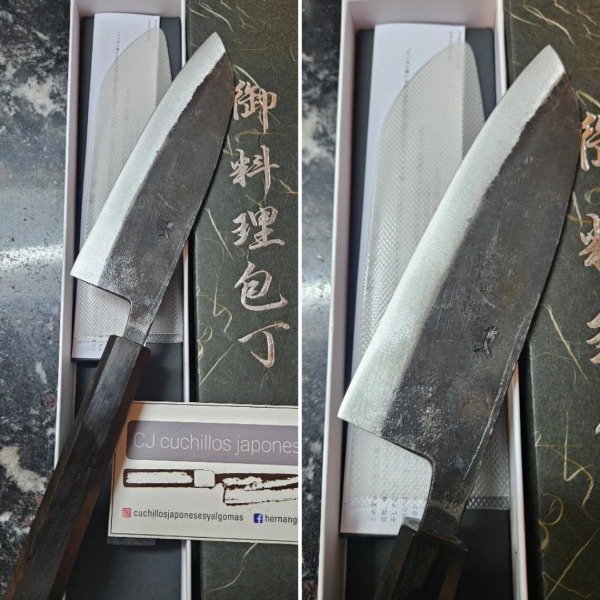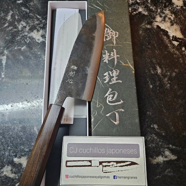 Hatsukokoro Kurogane Aogami #2 Kurouchi 165mm Santoku