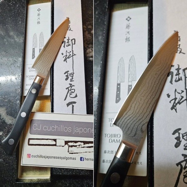 revestidos de Damasco tratados por expertos que la serie Tojiro DP Damascus. La línea cuenta con un núcleo de acero VG-10 de primera calidad revestido con 37 capas de acero inoxidable más suave acabado en un hermoso patrón de Damasco que es único para cada hoja. El tratamiento de Tojiro del VG-10 es excelente y el borde se vuelve increíblemente afilado, manteniendo un alto nivel de agudeza a través del uso serio. Estos cuchillos se consideran algunas de las mejores introducciones en el mundo de los cuchillos de cocina japoneses debido al valor extremo que aportan al mercado con hojas de muy, muy